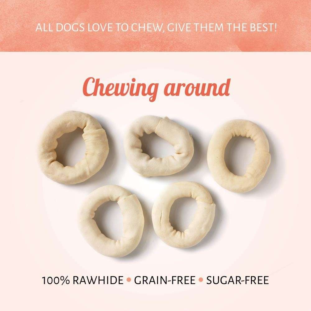 Los bocados para perro Donut Blanco son perfectos para compaginar juego con un pequeño bocado entre tu precioso perro y tú. El bonito diseño en forma de dónut está hecho solo de cuero crudo y es ideal para pasar el rato mordiendo y masticando.