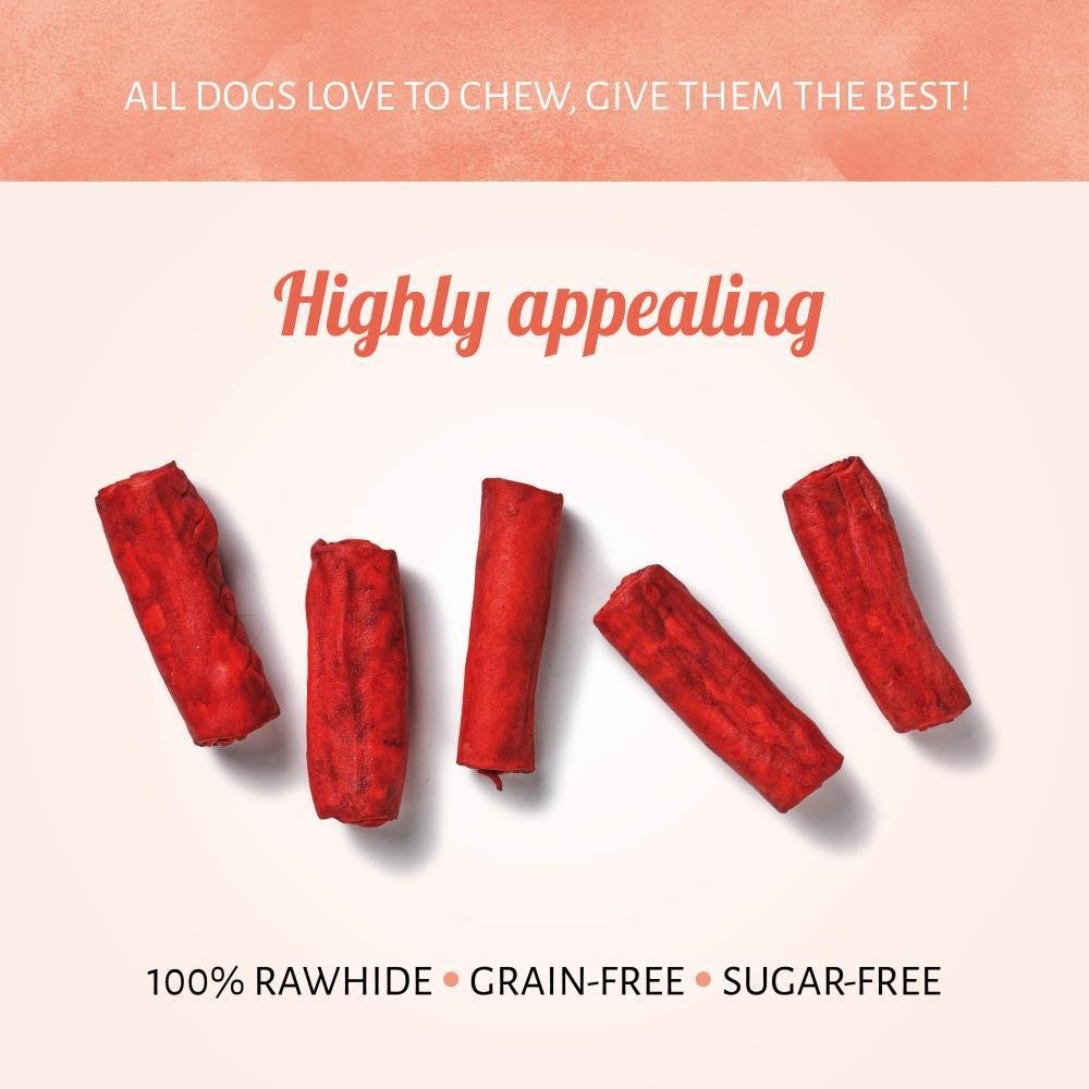 Los bocados para perro Roll Rojo son ricos en proteínas, bajos en grasas y tienen un sabor muy apetitoso para tu perro. Los bocados de cuero crudo proporcionan una experiencia de masticado desafiante para tu amigo de cuatro patas.