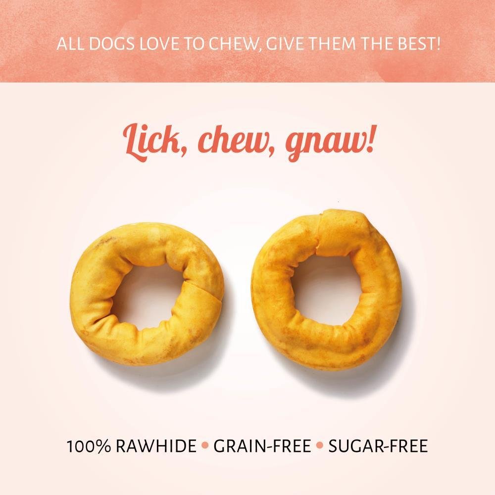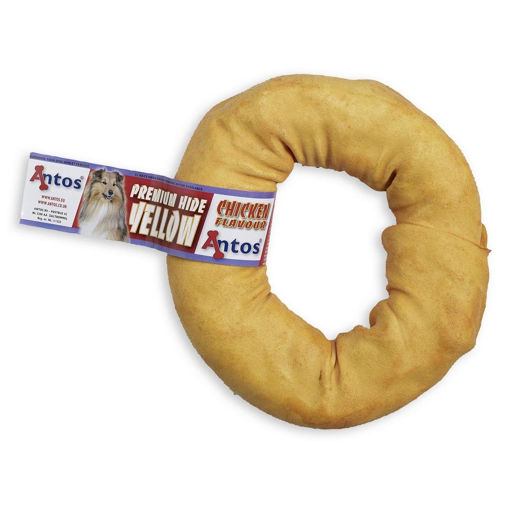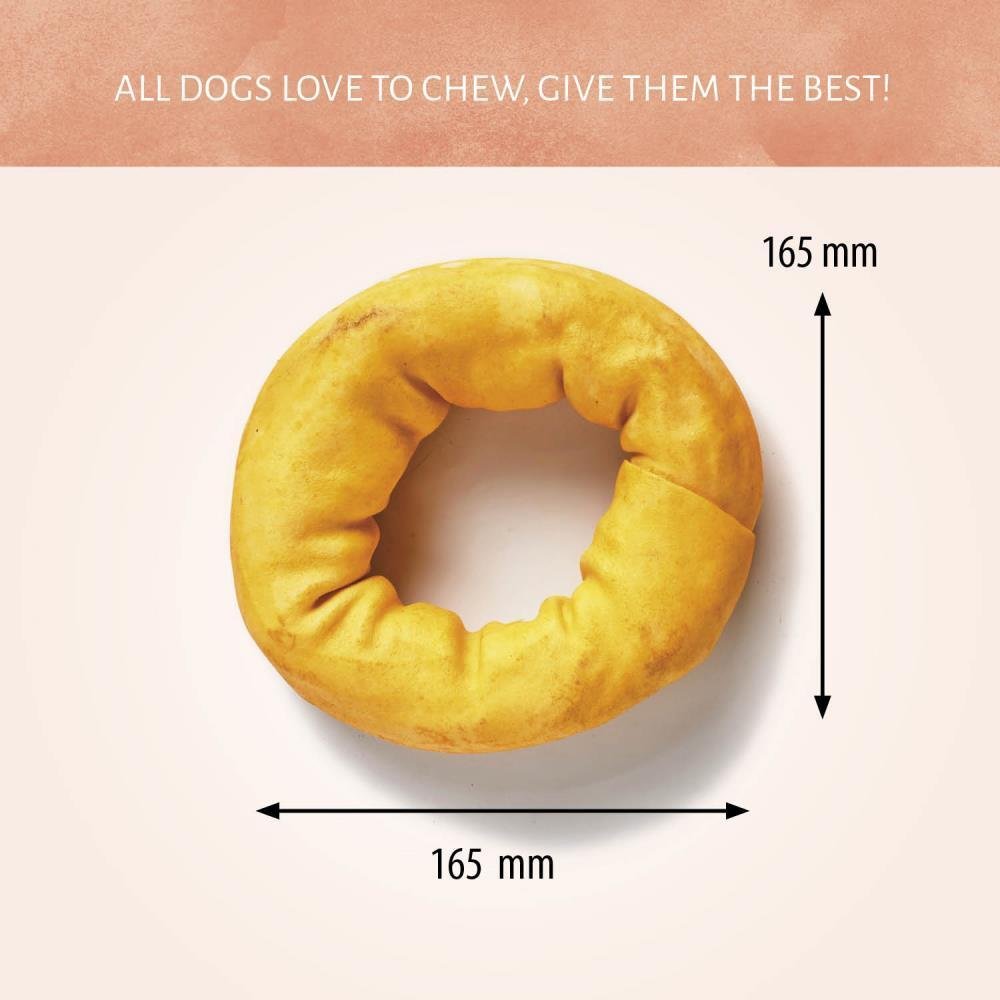 Los bocados para perro Ring Amarillo mantendrán a tu perro concentrado mental y físicamente. Este bocado de cuero crudo es comestible y digestivo con un sabor irresistible. La forma de anillo crea horas felices de lamer, morder y roer para tu perro.