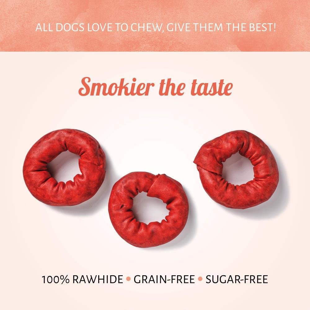 Los bocados para perro Ring Rojo convertirán la hora del aperitivo en algo todavía más excitante. Hechos con un sencillo ingrediente único, los bocados están ahumados naturalmente y se han diseñado para mantener concentrado a tu perro. Observa cómo se vuelve loco por estos sabrosos bocados oscuros.