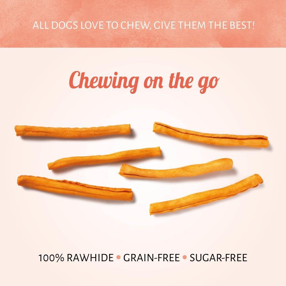 El bocado perfecto es sano, delicioso, y facilita la concentración y la motivación. Así que vamos a darle a tu perro nuestros bocados para perro Mini Roll Amarillo. Los bocados pequeños tienen un tamaño perfecto y son fáciles de llevar para premiar y masticar de excursión.