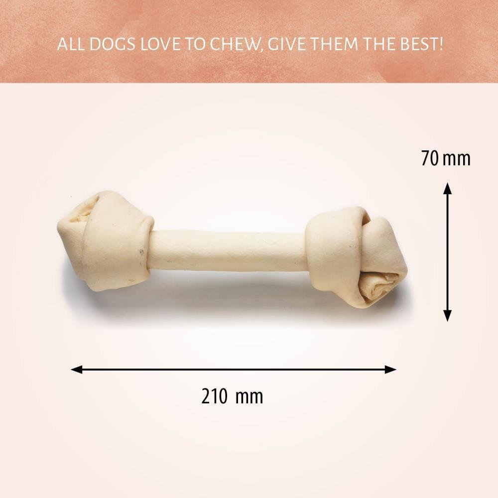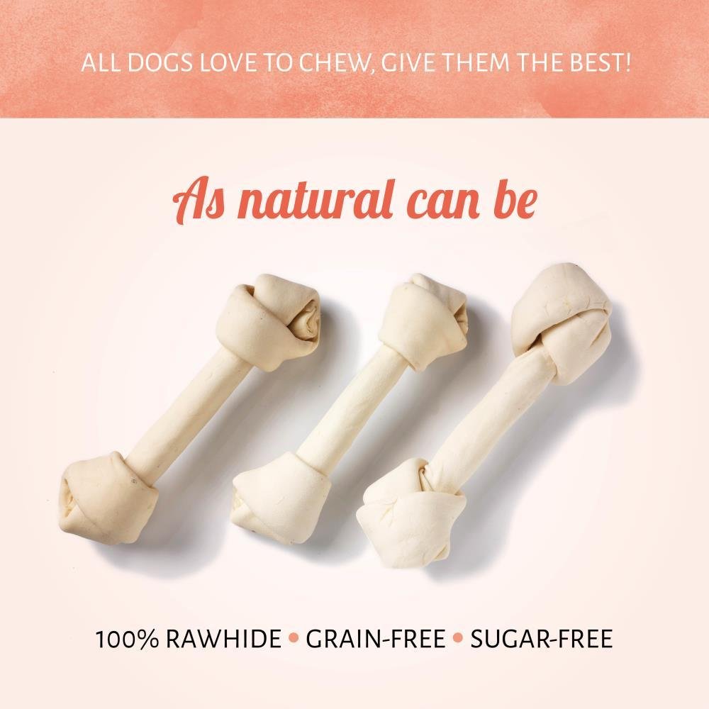 Dale a tu perro el sabor de los bocados para perro Heavy Prime Bone Blanco. Estos huesos de cuero crudo completamente naturales no contienen cereales y están hechos de un único ingrediente: son lo más sabrosos, naturales y masticables posible.