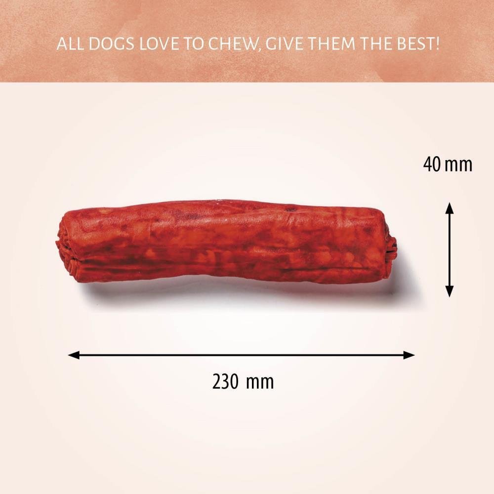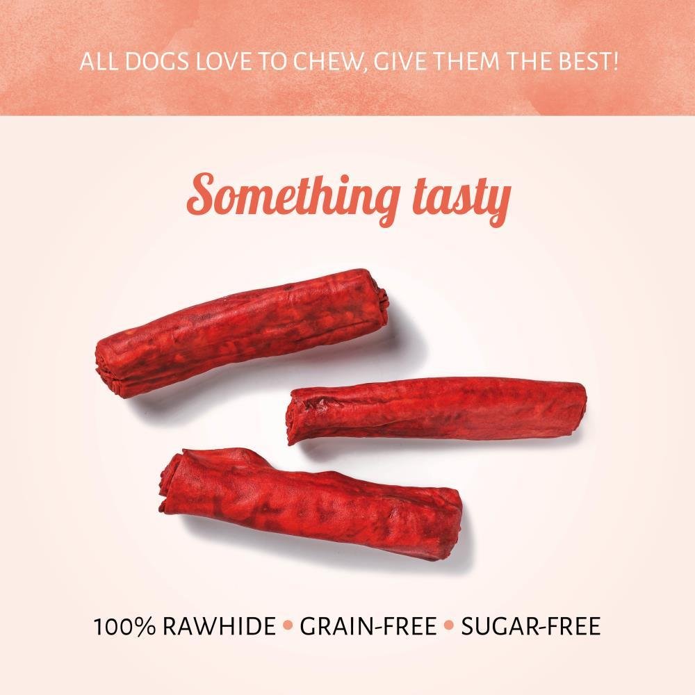 A los perros les encanta mordisquear juguetes... Por qué no darle a tu perro algo más sano para masticar con los bocados para perro Roll Rojo. Los bocados de cuero crudo favorecen la salud dental y tienen un sabor y textura ideal que hará que a tu perro le encante masticarlos.
