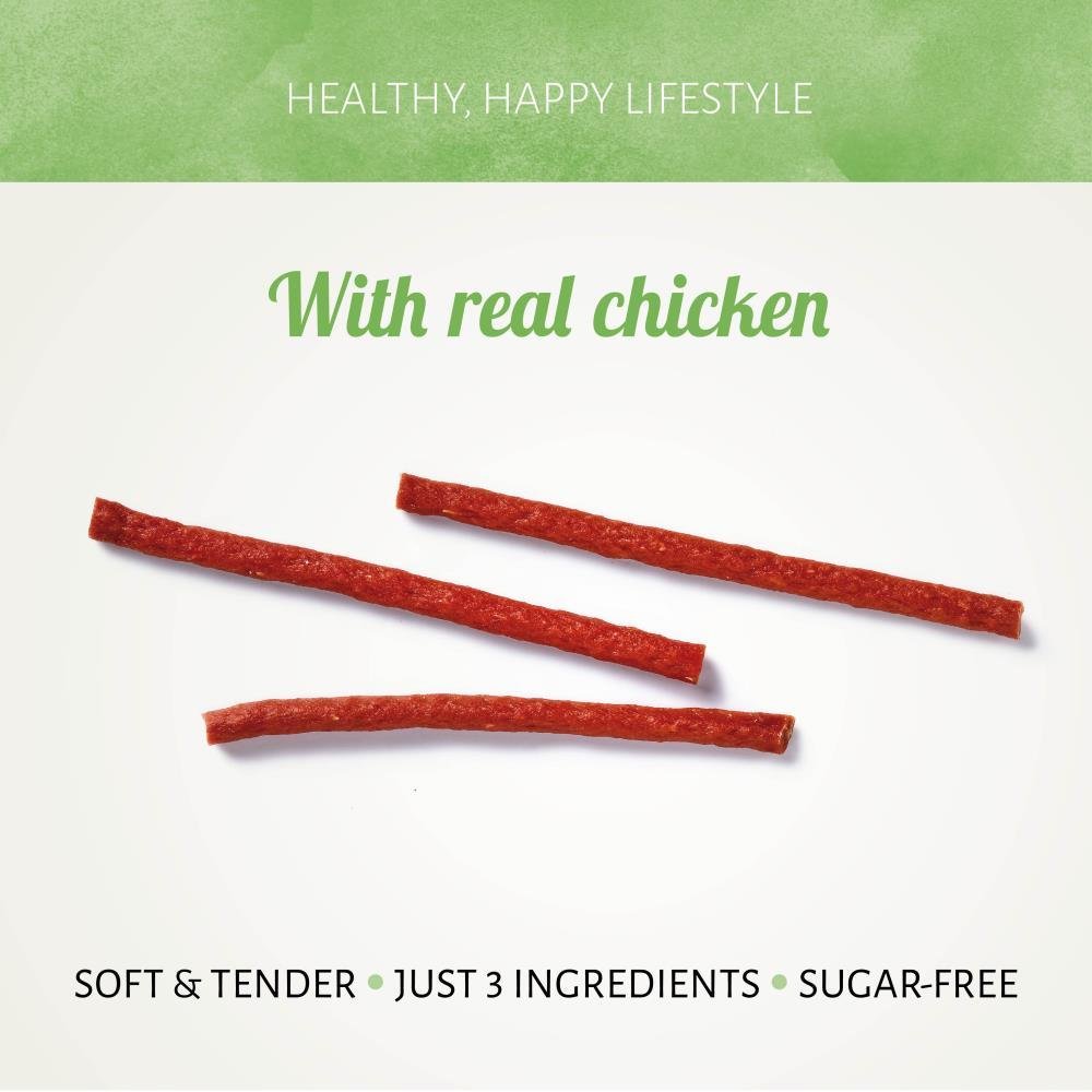 Estos palitos Antos Chicken Gold de gran sabor están hechos con pollo real como ingrediente principal. Son snacks deliciosamente saludables con pollo auténtico y no contienen ningún aditivo. Su textura masticable tan satisfactoria combina perfectamente con el sabor a pollo favorito, para que muevan la cola cada vez que abras la bolsa.