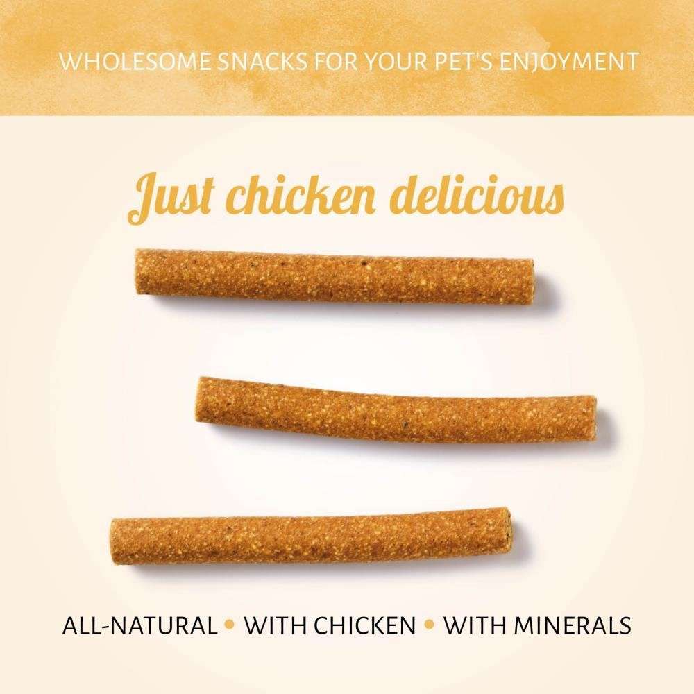 A los perros les encantan las cosas simples. Necesitan mucho amor, juego e ingredientes saludables para ser felices y sanos. Nuestras Barritas de Pollo proporcionan los nutrientes que tu mejor amigo necesita para sentirse mejor y lucir su mejor aspecto.