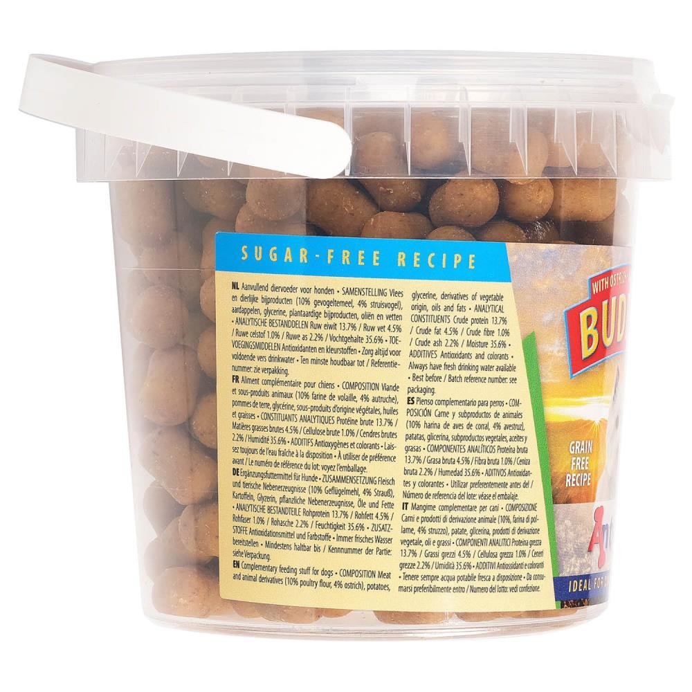 Dale a tu perro la mejor recompensa con ingredientes únicos con las golosinas para perros Buddies Avestruz. Estos sabrosos bocados contienen un 4 % de carne de avestruz, que es una gran opción para tu perro que es propenso a las alergias. ¡Agregue variedad a la rutina de tentempiés de tu perro!