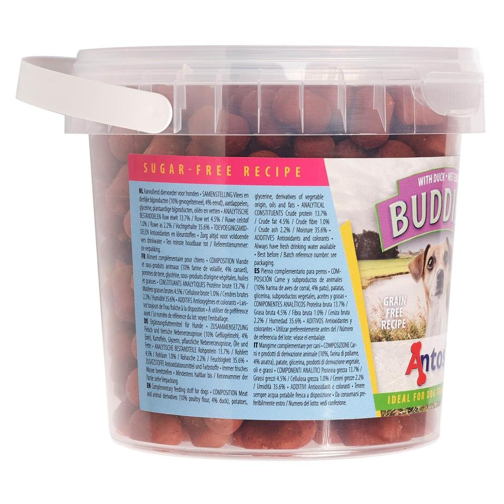 Recompensa su buen comportamiento con las golosinas Buddies Pato. Los bocadillos tienen un sabor masticable y fuera de este mundo en cada bocado. Confía en una sabrosa golosina que le dé a tu perro el extraordinario sabor que le gusta.