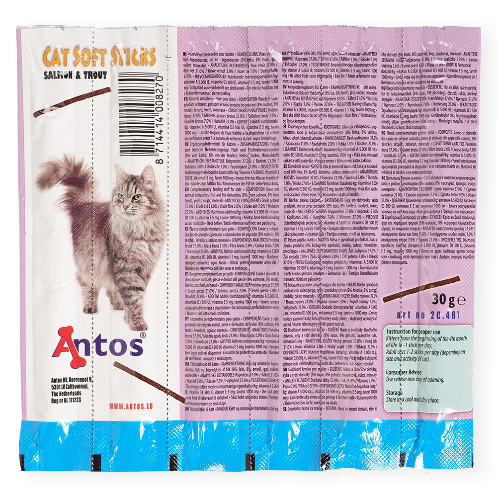 Increíblemente apetitoso y delicioso, a tu felino le encantará cada bocado de nuestros Cat Soft Sticks Madame. Tu gatito te dirá eso de “Dame eso tan miau delicioso”. Estos palitos suaves con sabor a salmón son fáciles de dar como refrigerio, golosina o adorno de comida.