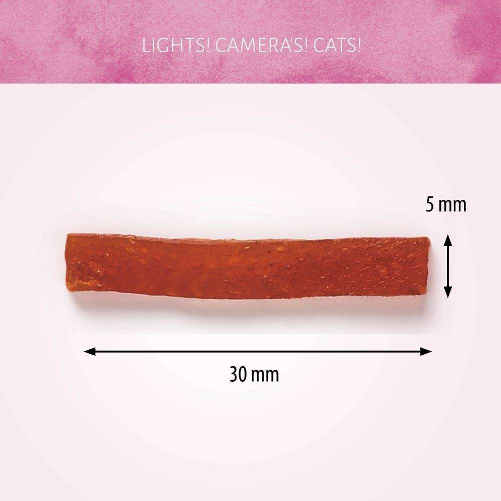 Alimente a su gato con premios. Premie de manera responsable: elija las golosinas según las recomendaciones de acuerdo con el tamaño de su gato. Para la seguridad de su gato, se recomienda observar a su mascota cuando le dé los premios. Vigile que tenga agua fresca en todo momento. Almacene en un lugar fresco, limpio y seco. Este producto es un premio y no se puede usar para sustituir una comida.