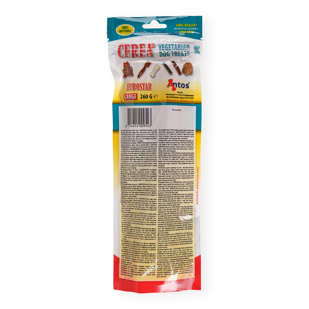 Proporcionar un cuidado dental diario no solo ayuda a evitar el mal aliento: también permite que su perro viva una vida saludable. Nuestros masticables Cerea Eurostar tienen un gran sabor que a su perro le encantará y son muy digeribles.