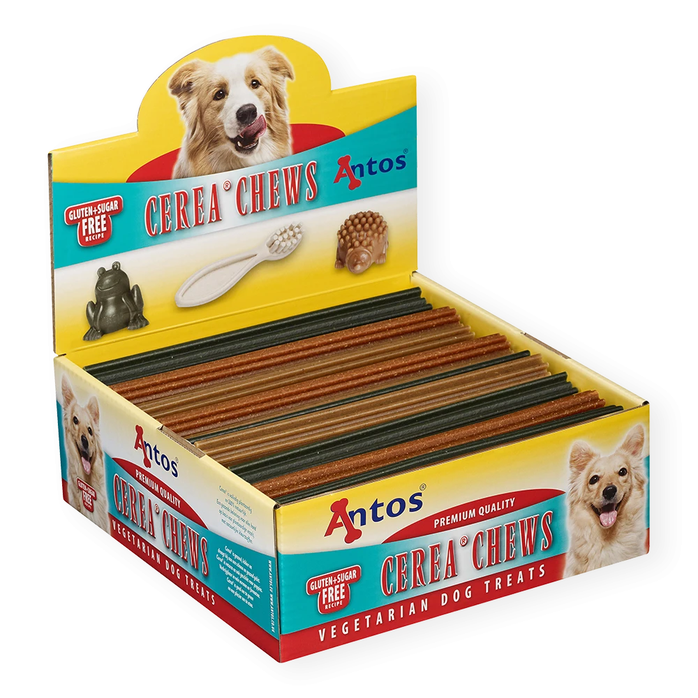 La calidad se comprueba masticando. Nuestros masticables Cerea Eurostar complementan su rutina de cepillado habitual, raspando la placa y el sarro para brindar a su perro un aliento fresco y agradable.