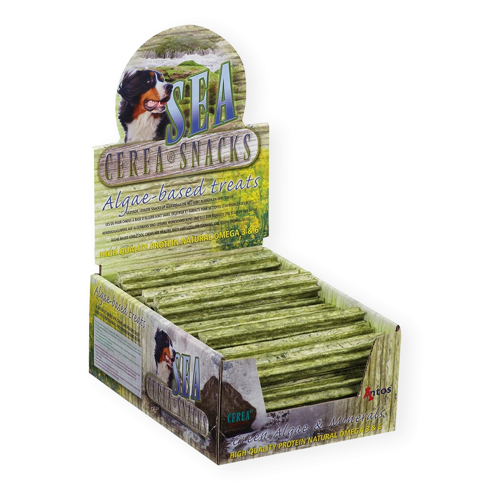 Totalmente naturales y completamente digeribles, los masticables Cerea Sea Eurostar son saludables, están elaborados a base de vegetales y algas y tienen un mínimo contenido de grasa. Al ser a base de fécula de patata, son adecuados para perros con alergias a los gluten.