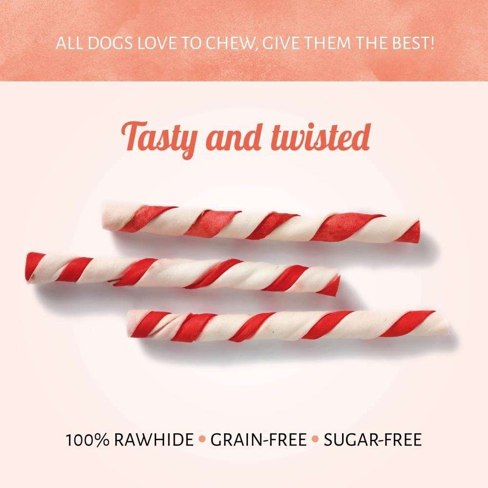 Prueba un clásico masticable para perros con alto contenido de proteínas con un toque diferente. Nuestro ChaCha's Roll Rojo tiene una textura interesante y retorcida que a tu perro le encantará. Están hechos para ofrecer a tu perro el placer de masticar y para proteger su higiene bucal general.