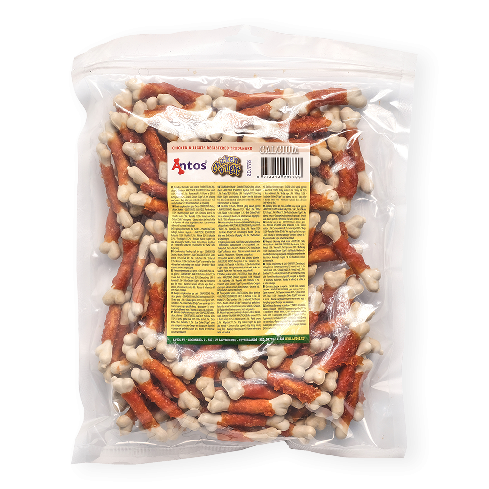 ¡Chicken D'light Calcium le da a tu perro lo mejor! Estas delicias combinan el sabor salado del pollo y el calcio en un aperitivo único. Hechos con ingredientes altamente digeribles, estos bocados son el manjar de referencia.