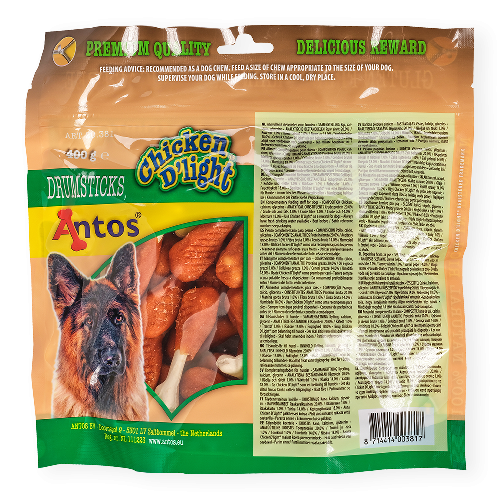 Recompensa a tu canino con deliciosos manjares que sean sabrosos y buenos para él o ella con Chicken D'light Drumsticks. Un sabor de pollo para hacer la boca agua que satisfará hasta a la mandíbula más delicada.