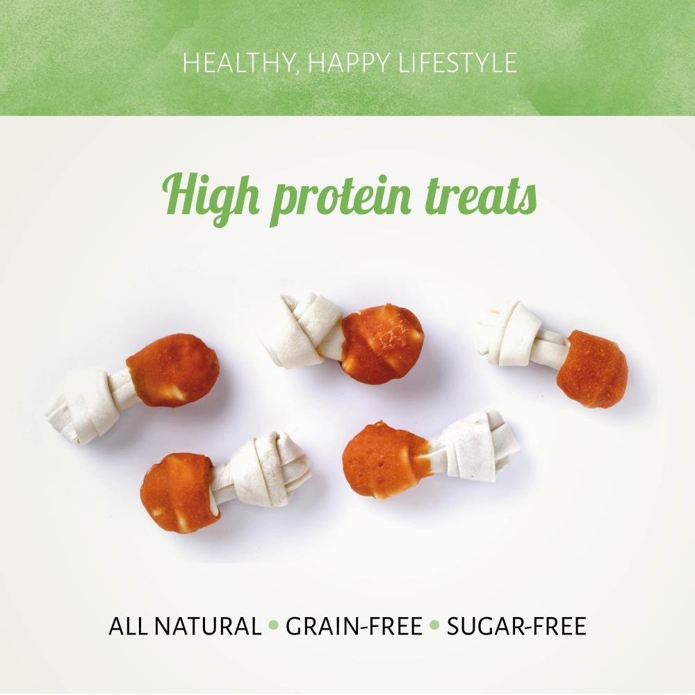 Los Chicken D'light Knots proporcionan a los perros una deliciosa combinación de pollo y cuero crudo en un sabroso bocado. Estas golosinas son completamente naturales hechas del pollo de mejor calidad envueltos alrededor de un hueso anudado de cuero crudo.
