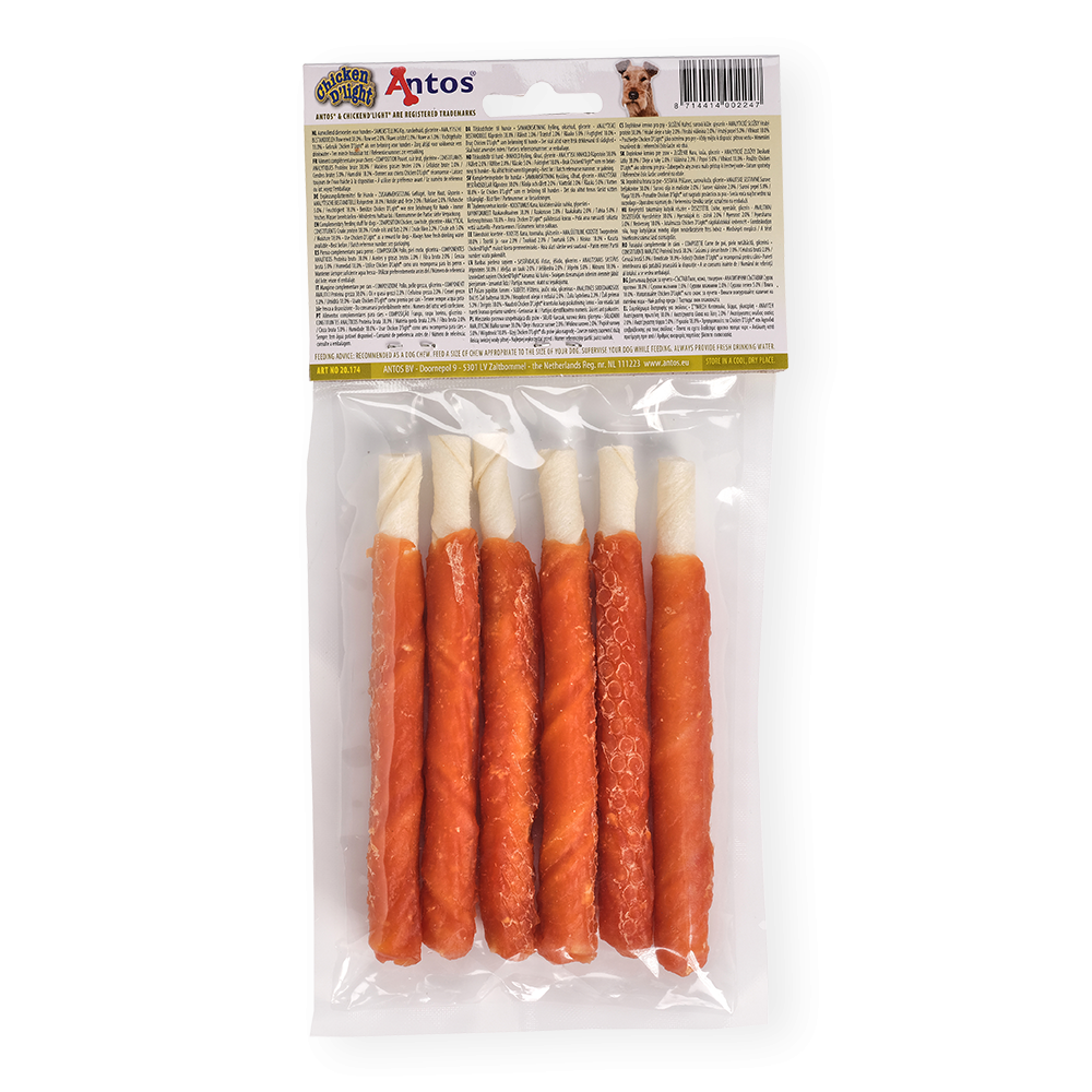 Los Chicken D'light Lollies tienen como ingredientes primarios la pechuga de pollo y el cuero crudo. Puedes sentirte bien dándole un pirulí a tu querido amigo, que sirve como regalo, recompensa o herramienta de entrenamiento.