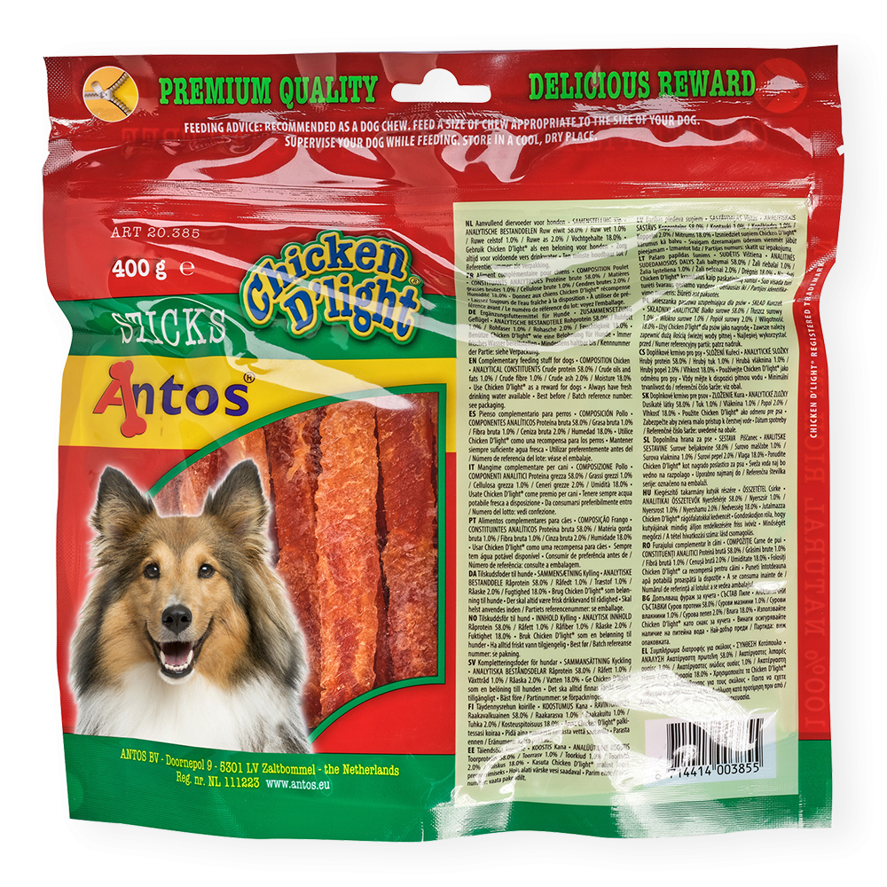 Estás buscando golosinas deliciosas para tu perro, Chicken D'light Sticks son exactamente lo que necesitas. Estas delicias de pollo irresistiblemente sabrosas son ricas en proteínas y bajas en grasas. ¡Recompensa hoy a tu amigo peludo!