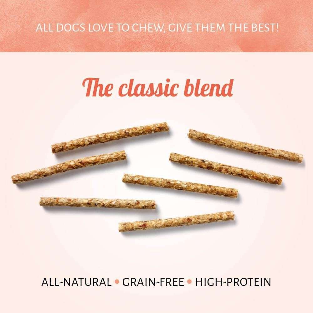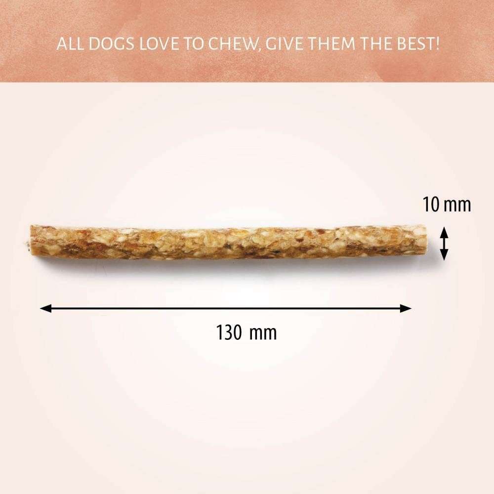 Haz que tu mascota se deleite con el placer simple de masticar. Ofrécele Crunchy Munchy Sticks Natural. Esta mezcla clásica de cuero crudo de primera calidad con harina de arroz será puro placer para las papilas gustativas de tu mascota. Tu perro se los comerá todos, eso no lo dudes.