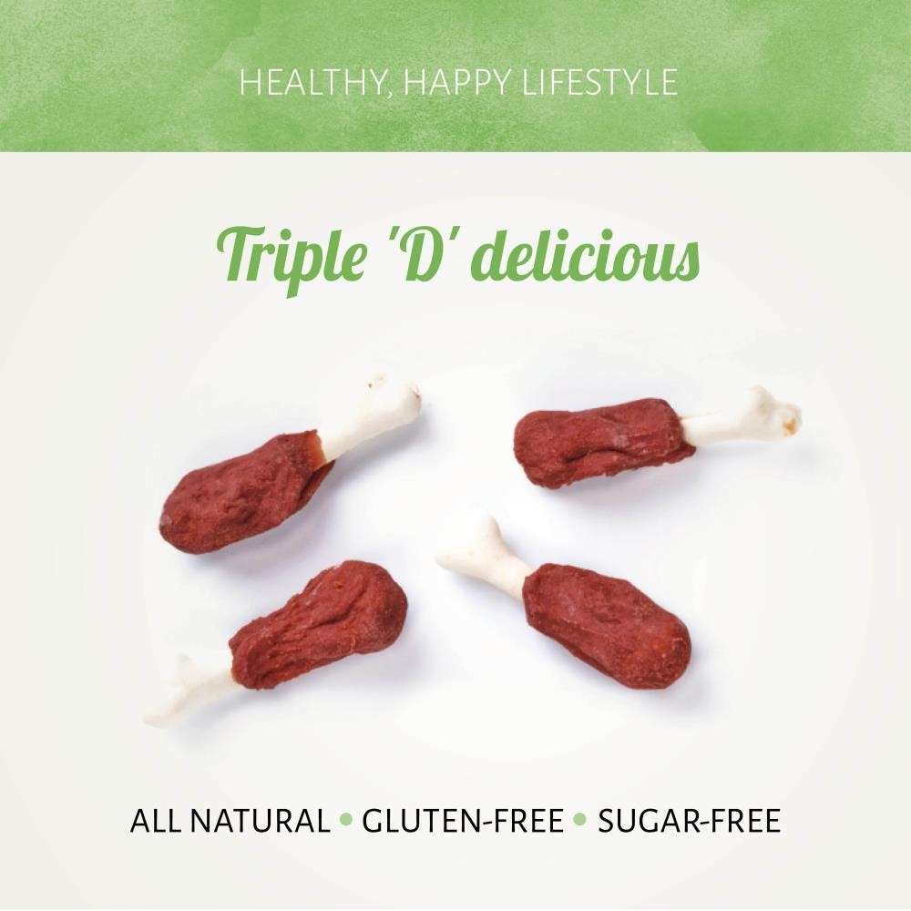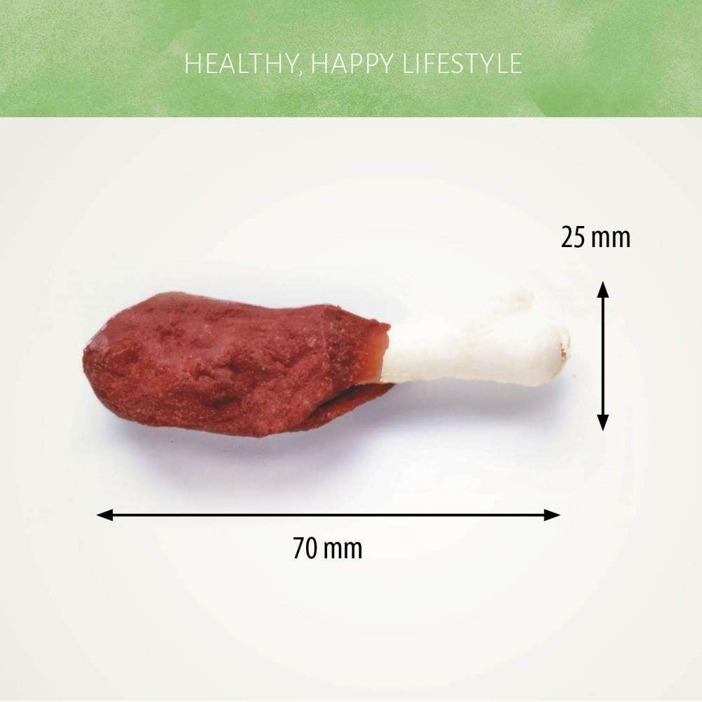 Rellenos de sabor de pato auténtico de primera, que seguro que encanta a tu perro. Te presentamos nuestros Duck D'light Drumsticks. La combinación única de pato y calcio en una única golosina, ¡perfecta para entrenar, premiar o simplemente mimar!