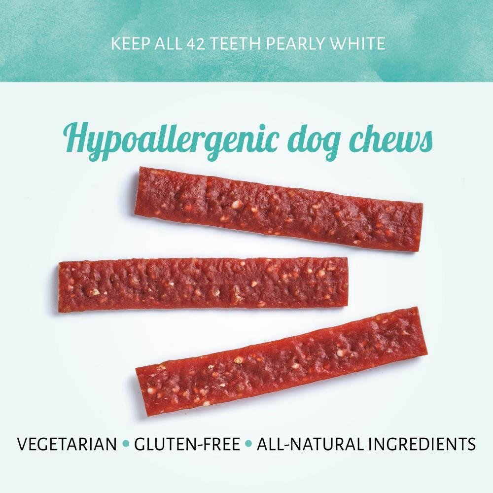 Comestible, vegetariano, sin gluten: Farm Flat Strip es una opción saludable para los perros con intolerancia al gluten o con sensibilidad a la comida. Están hechos con ingredientes naturales, incluyendo aceite de clavo de olor, y tienen un sabor irresistible.