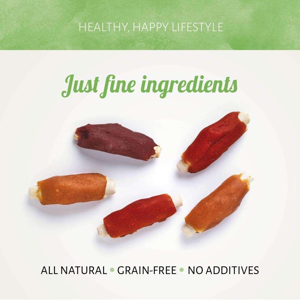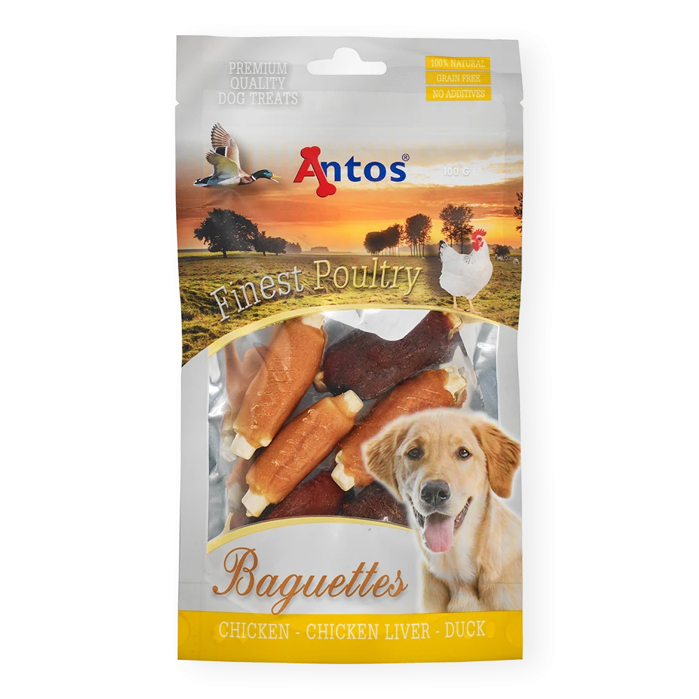 Nuestros Finest Poultry Baguettes contienen tres sabores en un "patástico" bocado - pollo, pato e hígado de pollo. Estos manjares ofrecen a tu mejor amigo un largo entretenimiento y cantidad de placer masticando.
