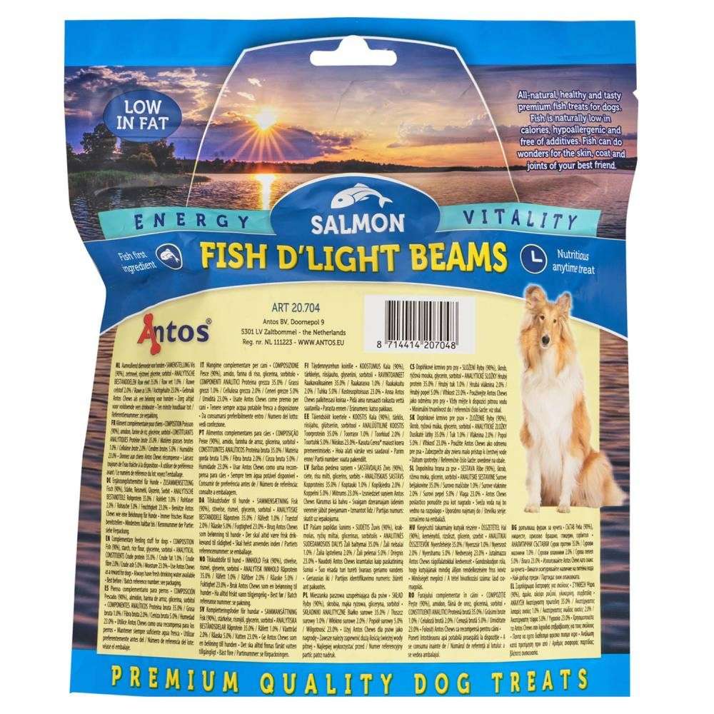 Fish D'light Beams dan palitos sanos con un sabor que vuelve locos a los perros. Tu perro se divertirá masticándolos y están cargados con un sabor ahumado único a salmón. Tu perro saboreará la diferencia.
