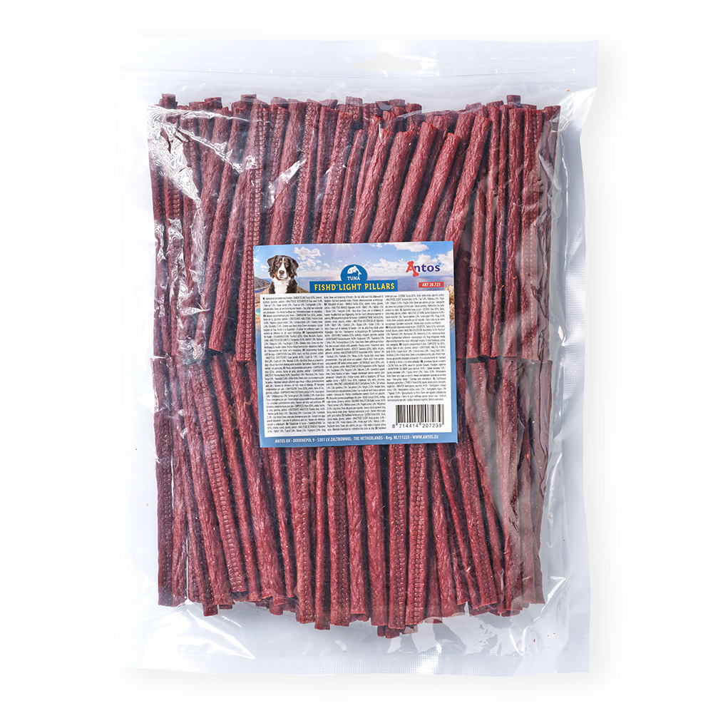 Regala a tu perro un sabor genial con Fish D'light Pillars. Estas deliciosas golosinas están hechas con pocos ingredientes para satisfacer a los estómagos más sensibles. Atún real, hecho. Digerible, hecho. Tamaño, hecho. El aroma y sabor convencen a los perros.