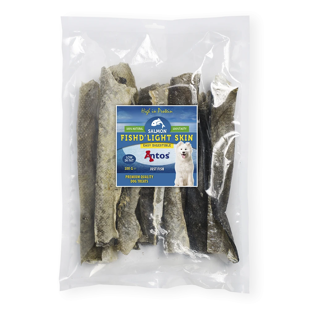 Dale a tu perro un premio lleno de nutrientes y de sabor con nuestra Fish D'light Skin. Hecha de piel de salmón 100 %, estas tiras están llenas de proteína fácilmente digerible para facilitar una piel y pelaje más sano en tu mejor amigo.