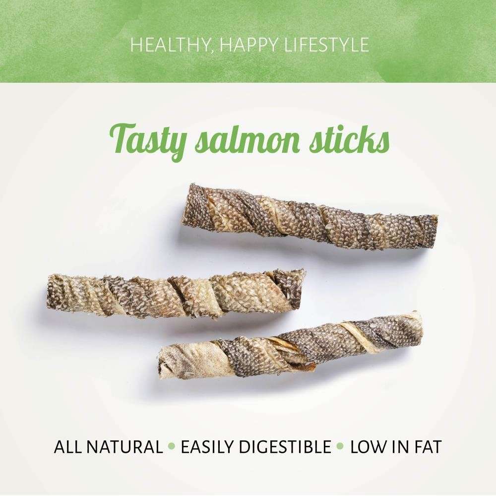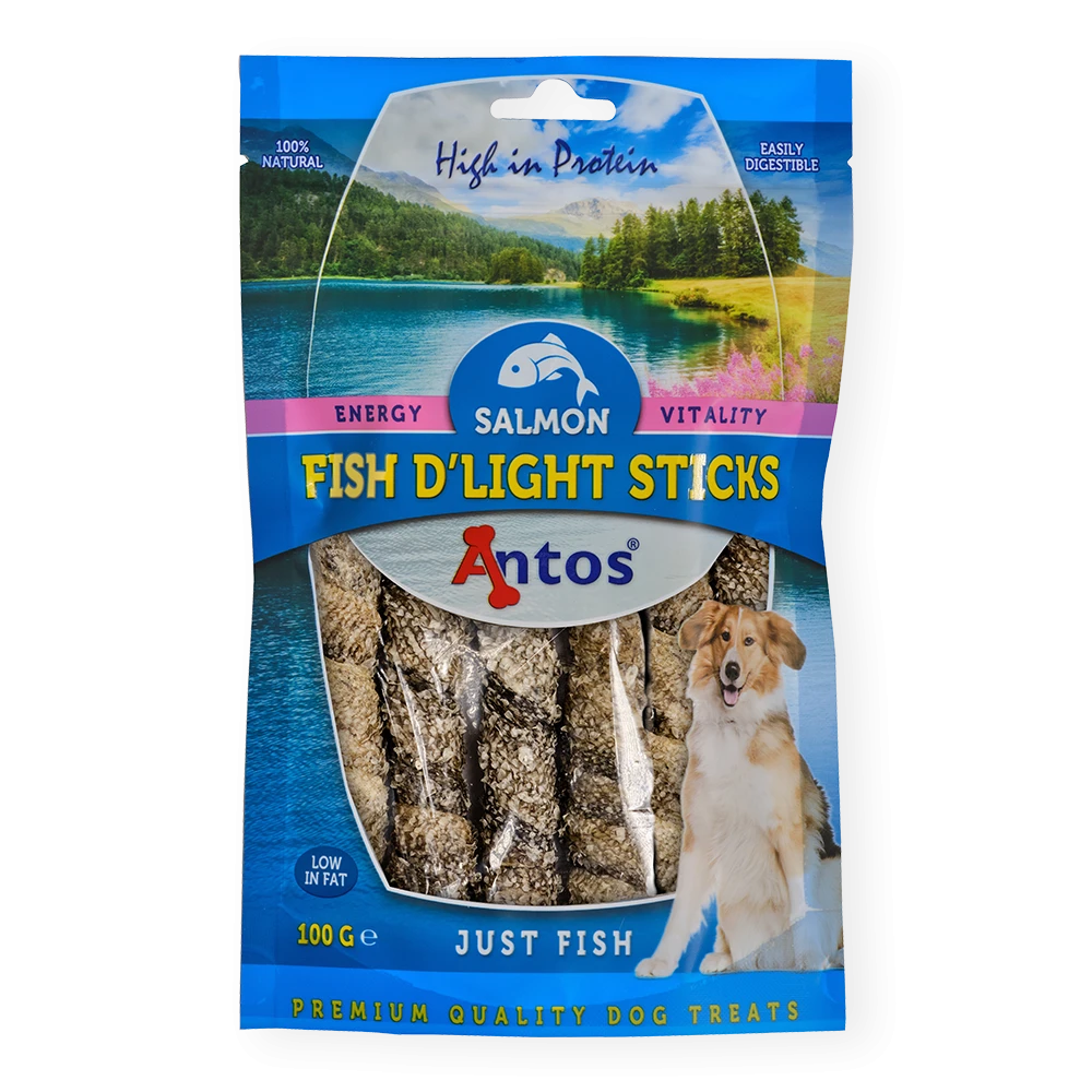 Dale a probar a tu amigo peludo el sabor del salmón con nuestros Fish D'light Sticks. Estos manjares están hechos de piel de salmón comestible 100 % natural y también reducen la formación de sarro y placa para encías y dientes más sanos.