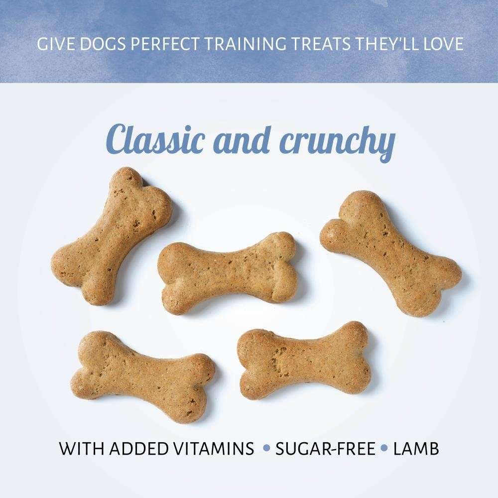 Dele a su compañero una recompensa de entrenamiento perfecta. Nuestras Galletas Clásicas tienen una divertida forma de hueso: son deliciosas y saludables. Súmelas a la dieta diaria de su perro.