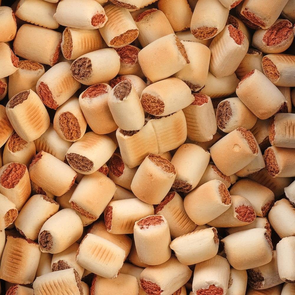 Nuestras galletas Maxi Mix de Tuétano son una delicia variada y crujiente. Estas sustanciosas golosinas vienen en diferentes sabores, como carne de res, pollo y salmón. Se trata de galletas saludables que se convertirán en las preferidas de su perro.