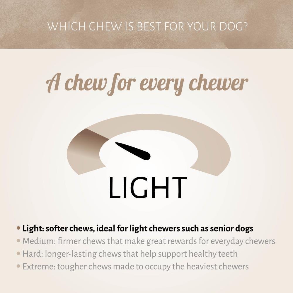 Recomendado como tentempié para perros. Premie de manera responsable: elija las golosinas según las recomendaciones de acuerdo con el tamaño de su perro. Para la seguridad de sus mascotas, supervise a su perro cuando mastique o le dé un premio. Vigile que tenga agua fresca en todo momento. Almacene en un lugar fresco, limpio y seco. Este producto es un premio y no se puede usar para sustituir una comida. No apto para consumo humano.