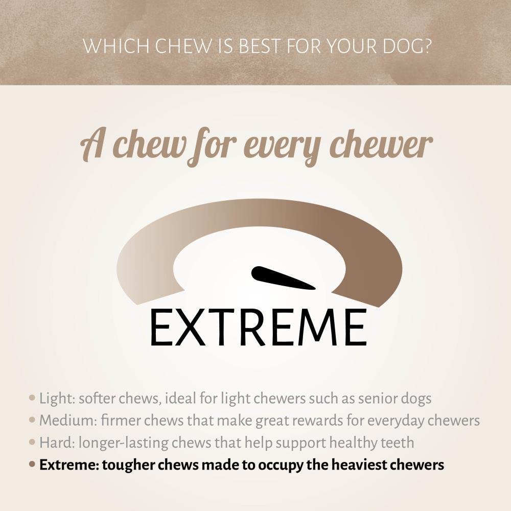 Recomendado como tentempié para perros. Al ser un producto natural, el tamaño pueden variar. Premie de manera responsable: elija las golosinas según las recomendaciones de acuerdo con el tamaño de su perro. Para la seguridad de sus mascotas, supervise a su perro cuando mastique o le dé un premio. Retire las piezas pequeñas o rotas para evitar el peligro de asfixia. Vigile que tenga agua fresca en todo momento. Almacene en un lugar fresco, limpio y seco. Este producto es un premio y no se puede usar para sustituir una comida. No apto para consumo humano.
