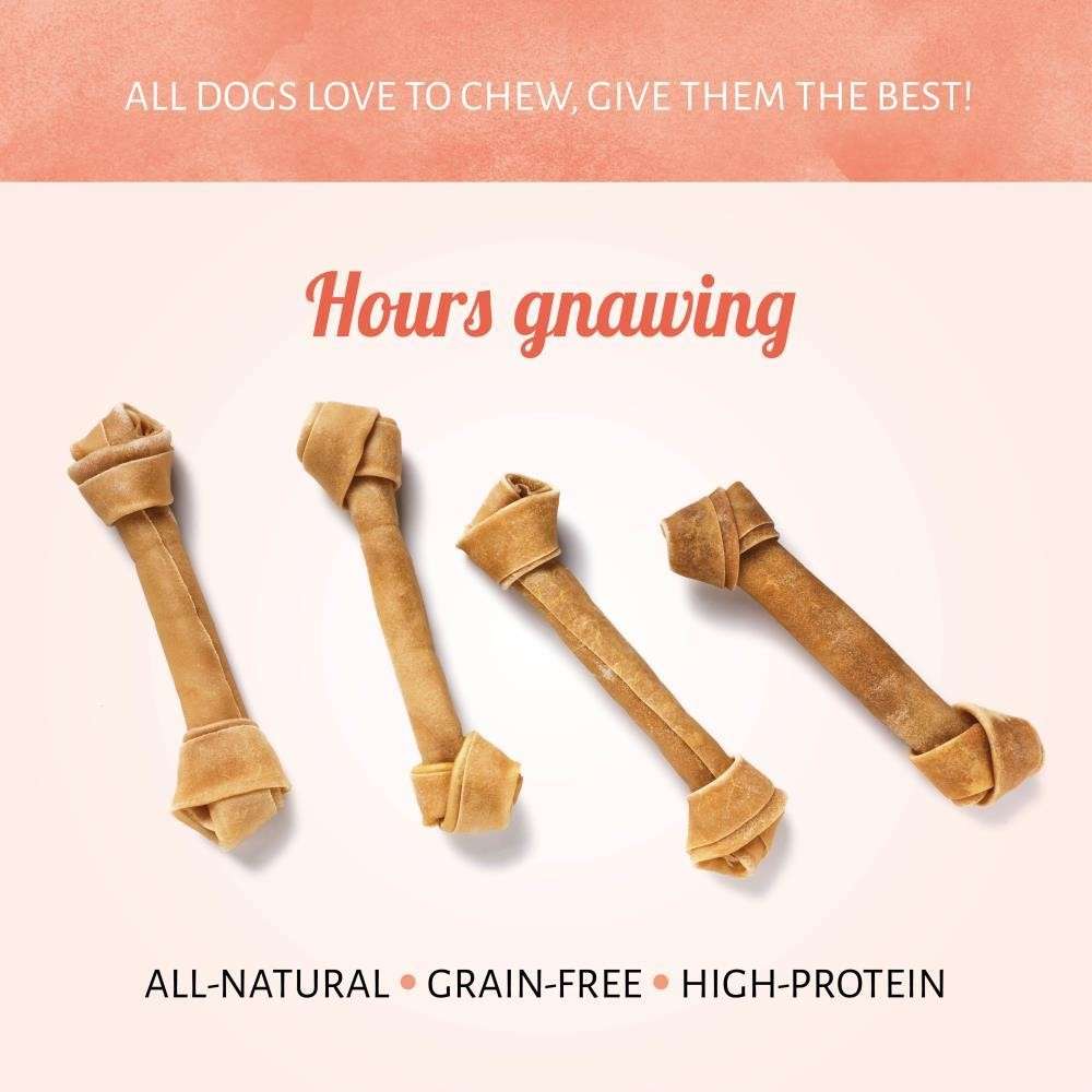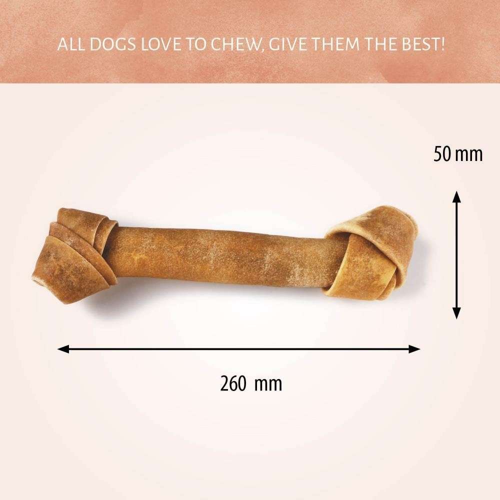 Tu perro pasará horas masticando nuestras deliciosas golosinas para perros Hueso Nudo. Estos masticables de cuero crudo totalmente naturales poseen un sabor natural y sabroso que le encantará a tu mascota, además de mantenerla alejada de zapatos y muebles.