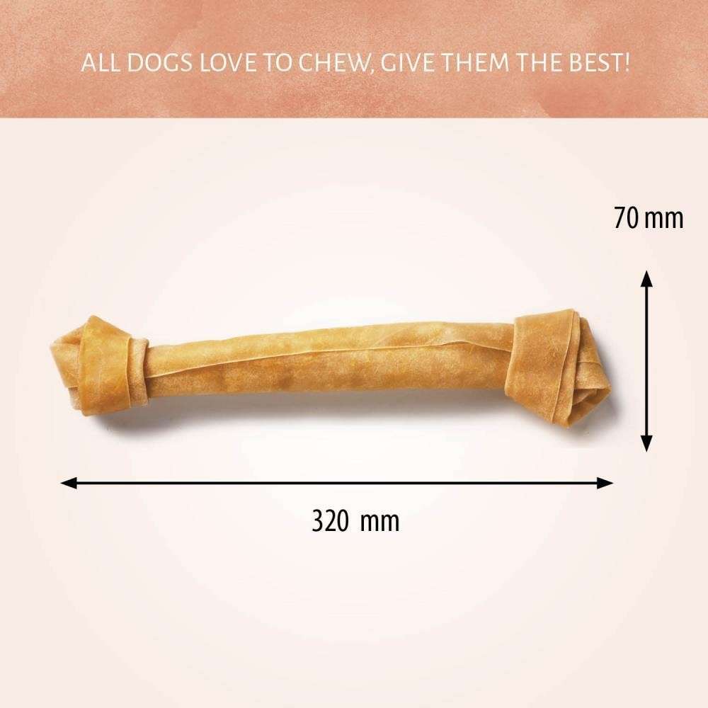 Tu mascota adorará los masticables Hueso Nudo. Favorecen el control del sarro y ayudan a proteger la salud de los dientes y las encías. Están elaborados con cuero crudo totalmente natural y son especialmente atractivos para los perros grandes.