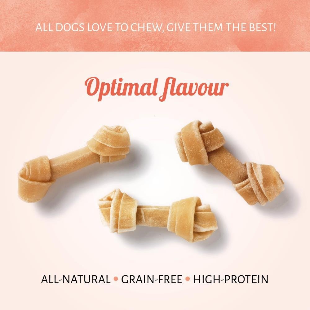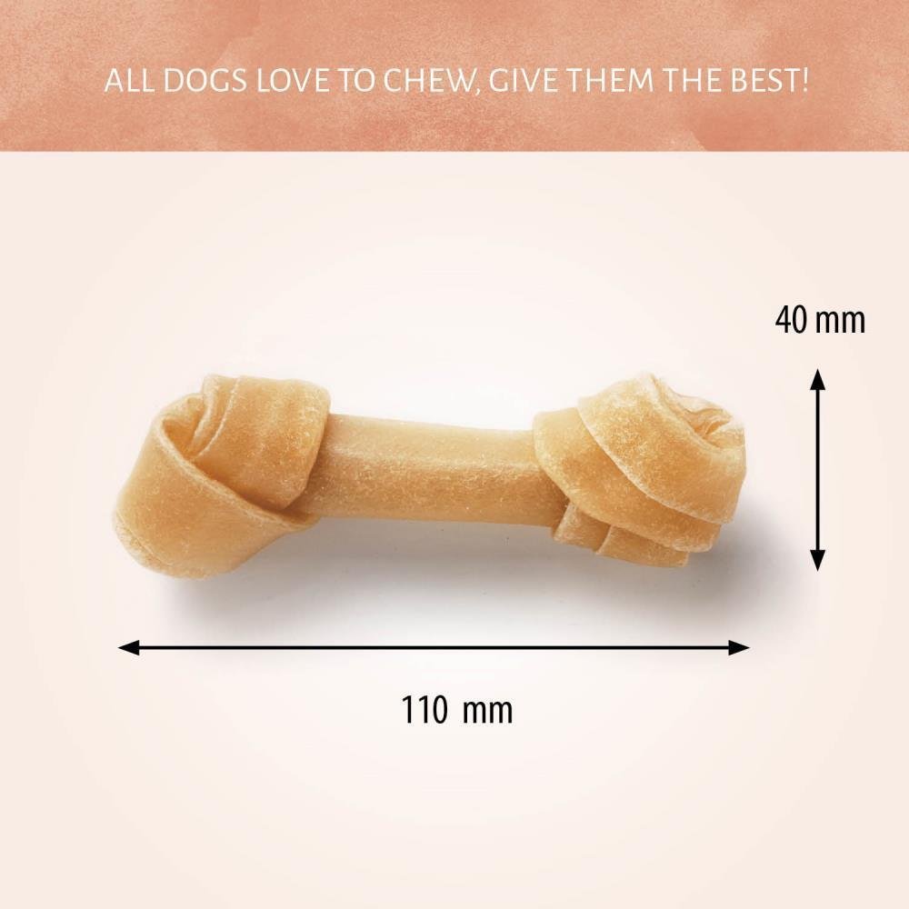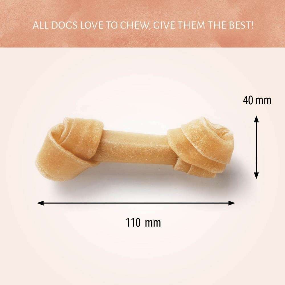 Dale a tu mascota el inigualable e irresistible sabor de los masticables para perros Hueso Nudo. Se trata de golosinas de larga duración elaboradas cuidadosamente para garantizar una calidad y un sabor óptimos. El cuero crudo totalmente natural está presente en cada bocado.