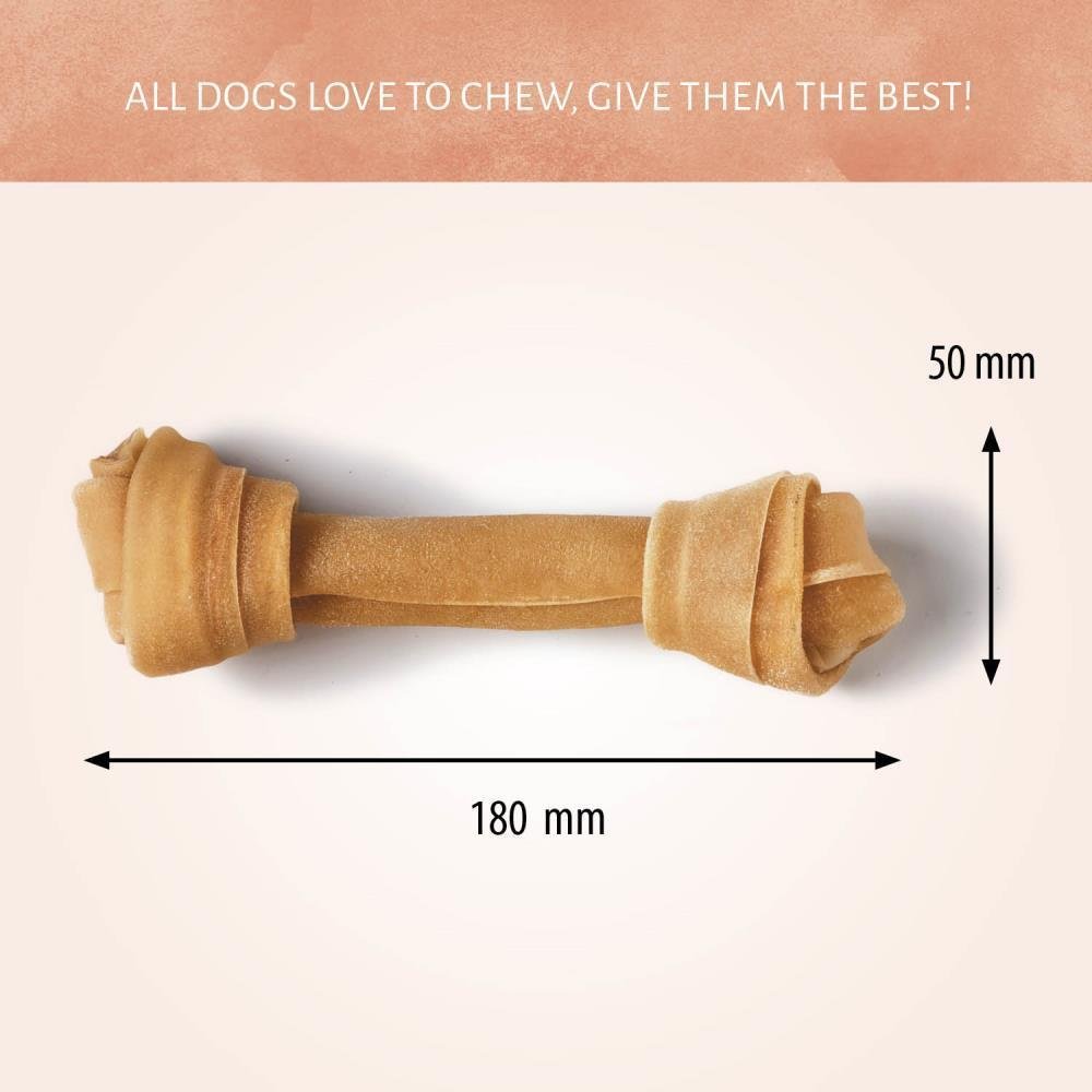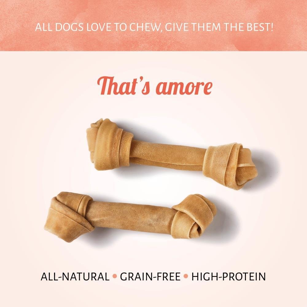 El masticable para perros Hueso Nudo viene en un paquete de dos unidades. Eso es amor. Estos masticables de cuero crudo totalmente naturales harán que tu mascota babee. Están elaborados con la auténtica calidad que tu perro se merece.