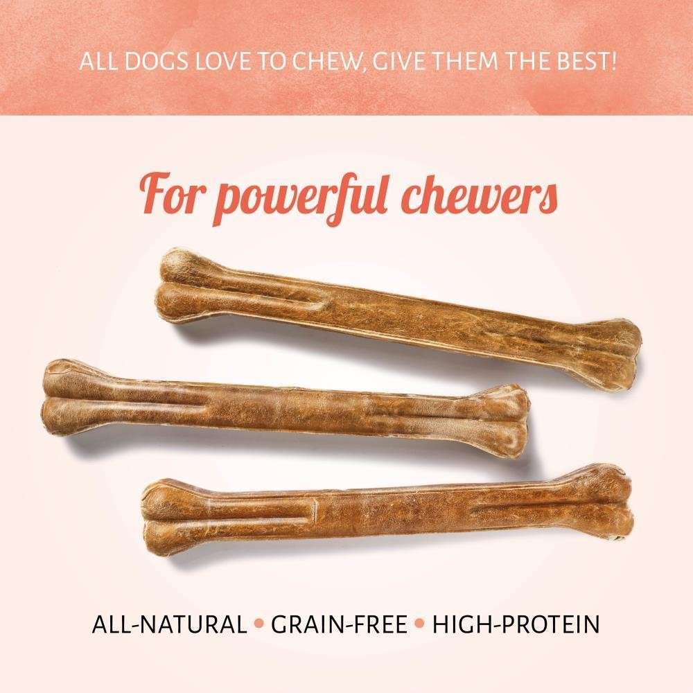 Si estás buscando un masticable para perros grandes, ¡lo has encontrado! Nuestros masticables Hueso Prensado, totalmente naturales, ofrecen la satisfacción de masticar cuero crudo con un sabor irresistible. ¡Tu perro estará ocupado disfrutando de todo ese sabor!