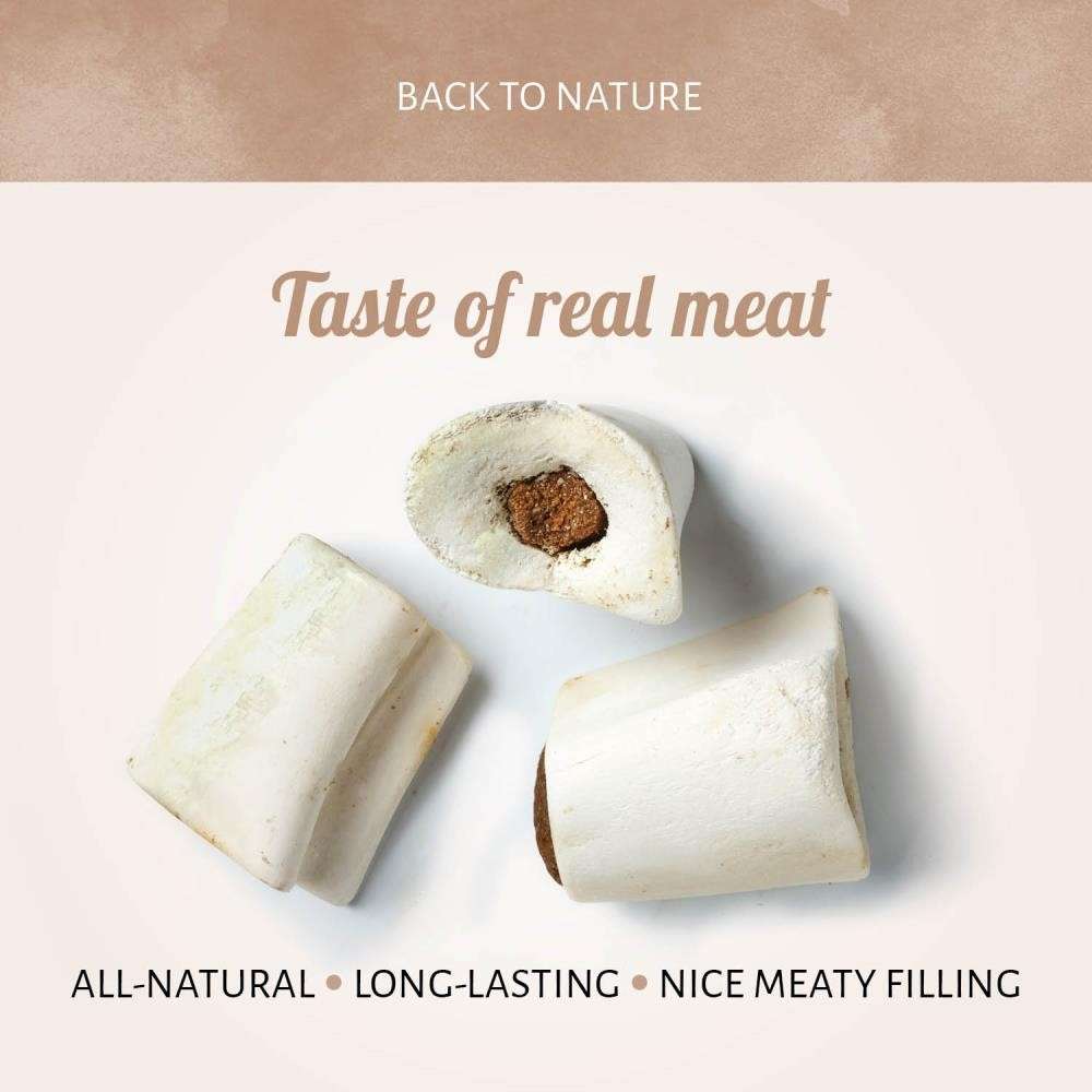 Nuestro hueso blanco y carnoso con tuétano es un buen producto para mantener ocupado y entretenido a tu perro mientras disfruta del sabor adicional del relleno de carne. Este delicioso aperitivo natural es el modo perfecto para mimar a tu mejor amigo.