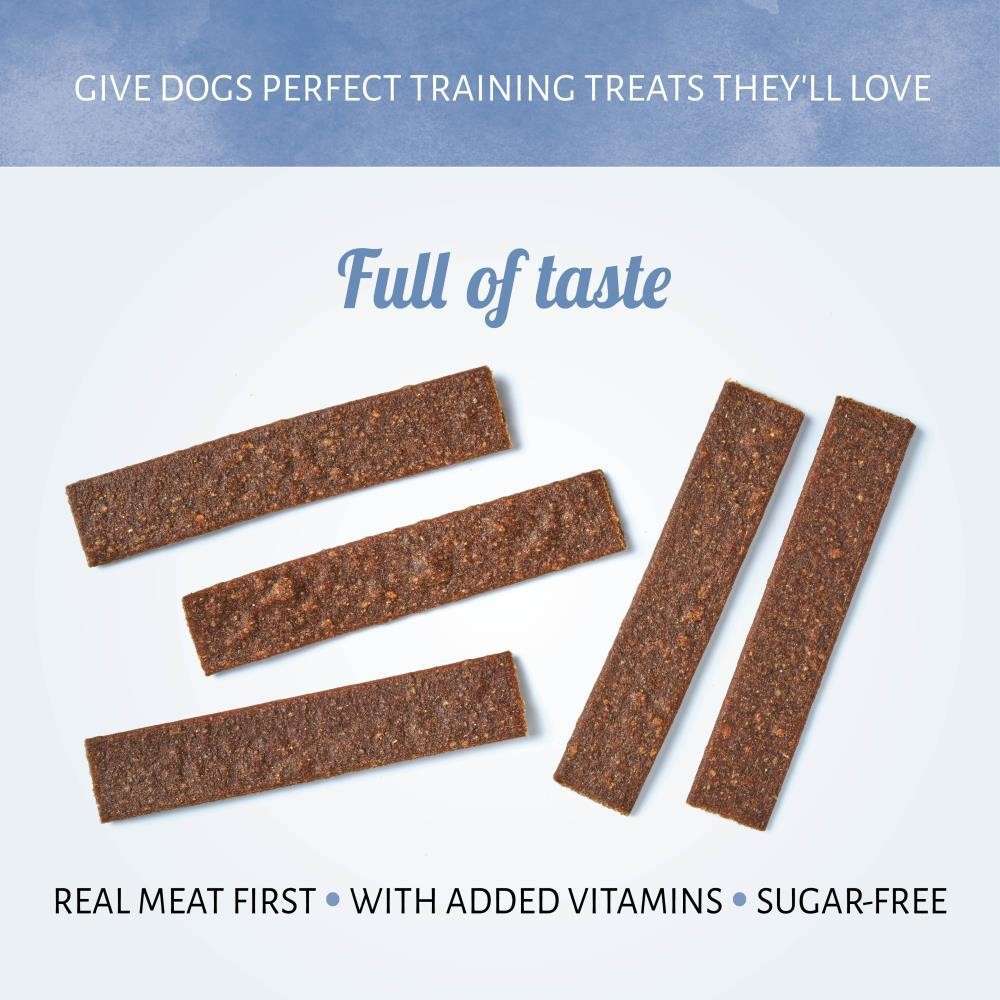 Muéstrale a tu perro lo importante que es recompensándole con nuestras golosinas Jerkey Strips Caza. El sabor, la textura y el aroma volverán loco a tu perro. Las golosinas blandas son una baza segura para satisfacer el antojo de carne de tu perro.