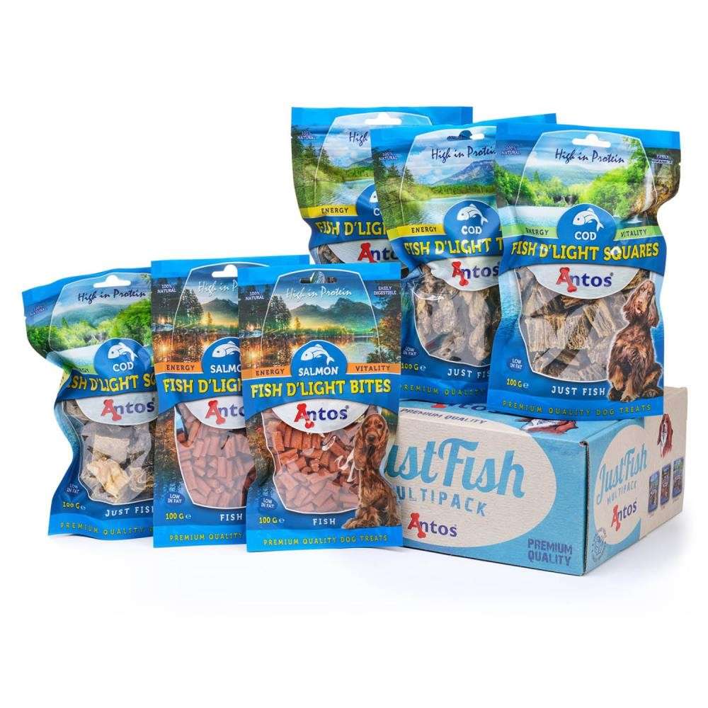 JustFish Multipack te trae el más delicioso sabor del mar. Es una caja con manjares saludables y exquisitos de origen marino. Deja que tu perro disfrute el equilibrio perfecto de estos snacks de pescado crujientes, sabrosos y saludables.