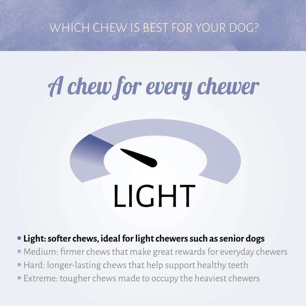 Recomendado como tentempié para perros. Premie de manera responsable: elija las golosinas según las recomendaciones de acuerdo con el tamaño de su perro. Para la seguridad de sus mascotas, supervise a su perro cuando mastique o le dé un premio. Vigile que tenga agua fresca en todo momento. Almacene en un lugar fresco, limpio y seco. Este producto es un premio y no se puede usar para sustituir una comida.