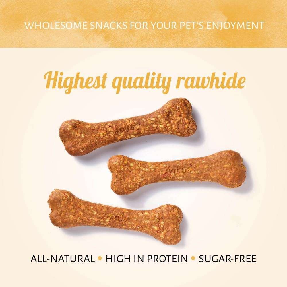 Lo pondrás patas arriba por nuestros Meaty Bone Cordero. Estos bocados naturales que le harán menear la cola se han creado con cuero crudo real. Tu perro seguro que adorará este bocado en la clásica forma de un hueso.