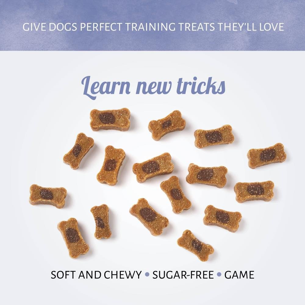 Premia tu perro por aprender nuevos trucos y alarga un poco la hora de la merienda con nuestras golosinas para perros Mini Bones Duo Caza. Las golosinas suaves y sin azúcar ofrecen un gran sabor en cada bocado.