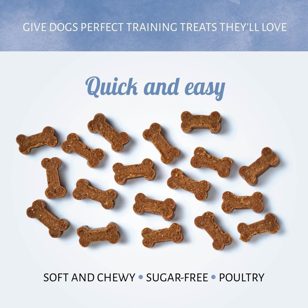 Haz que el adiestramiento de tu perro sea más emocionante con nuestras golosinas para perros Mini Bones Pollo. Elaboradas con verdadera ave de corral como primer ingrediente, son simplemente del tamaño perfecto de una recompensa de adiestramiento que es rápida y fácil de dar.