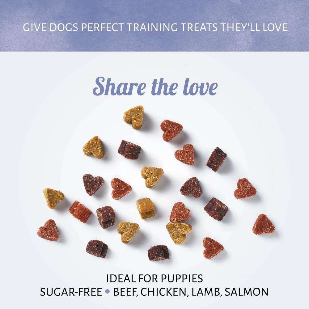 Si estás completamente enamorado de tu perro, dale golosinas Mini Hearts. Inspirados en las golosinas con forma de corazón que todos conocemos y adoramos, estos productos son la manera perfecta de darle un gusto y recompensar a tu amigo más fiel.
