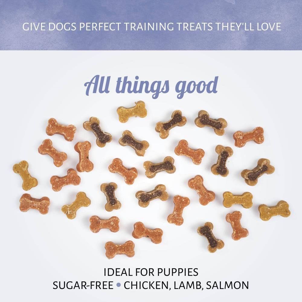 Repletas de pollo, cordero y salmón y un aroma que hará que a tu perro se le haga la boca agua, nuestras golosinas para perros Mini Mix son una herramienta imprescindible para la formación. Tu perro no confundirá el aroma tentador de estas deliciosas golosinas.