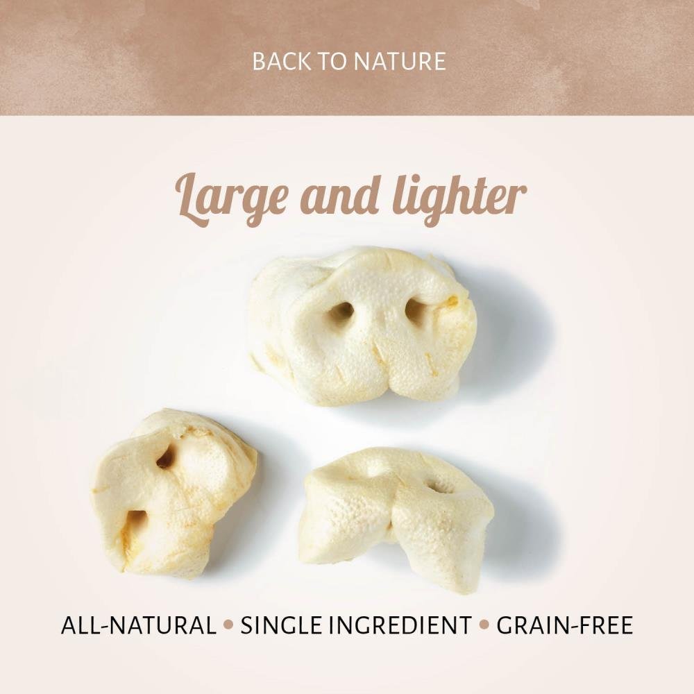 Nuestros hocicos de cerdo inflados son un aperitivo para perros sano, irresistible y completamente natural que tu can seguro que adora. Los bocados son más grandes y ligeros mediante el proceso de inflado, lo que los hace más fáciles de comer para perros de cualquier tamaño.