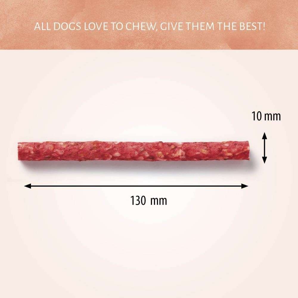 Dale a tu mascota Munchy Sticks Rojo, un masticable que lo llenará de satisfacción. Estos masticables sin azúcar se elaboran con solo dos ingredientes: cuero crudo y harina de arroz. Es un masticable duradero y altamente digerible.